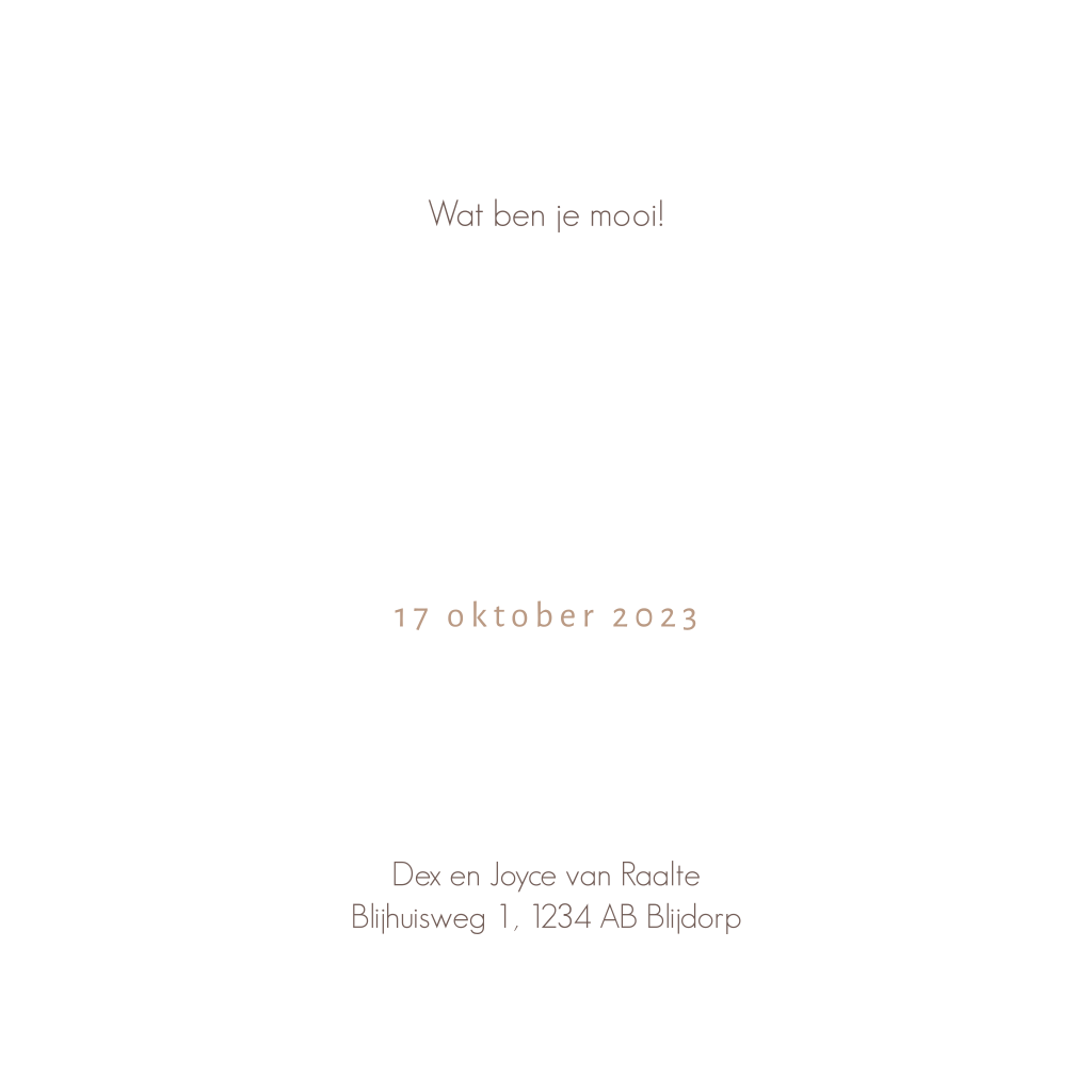 Dit geboortekaartje is een ontwerp van Jollein® uit de Goose collectie en is speciaal in samenwerking met Jollein® ontworpen. Alle designelementen staan daarom vast waardoor het ontwerp zelf niet aanpasbaar is. Je kunt de teksten uiteraard wel gemakkelijk aanpassen in de editor.