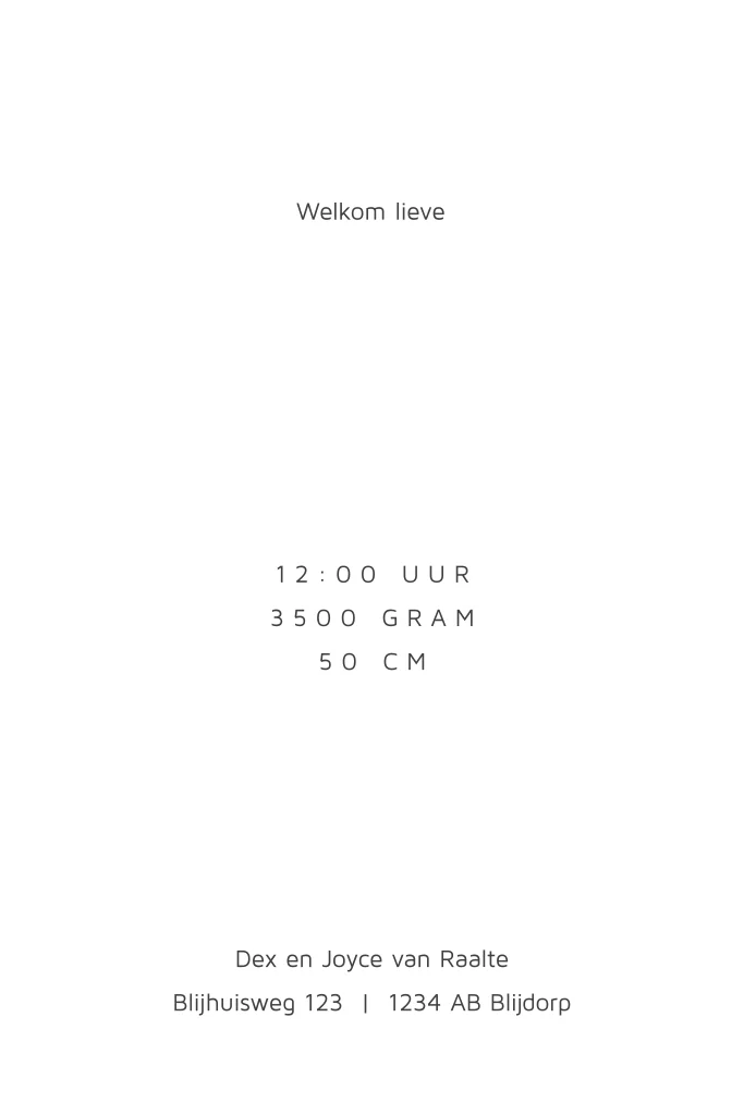 Dit geboortekaartje is een ontwerp van Jollein® uit de Spickle collectie en is speciaal in samenwerking met Jollein® ontworpen. Alle designelementen staan daarom vast waardoor het ontwerp zelf niet aanpasbaar is. Je kunt de teksten uiteraard wel gemakkelijk aanpassen in de editor.