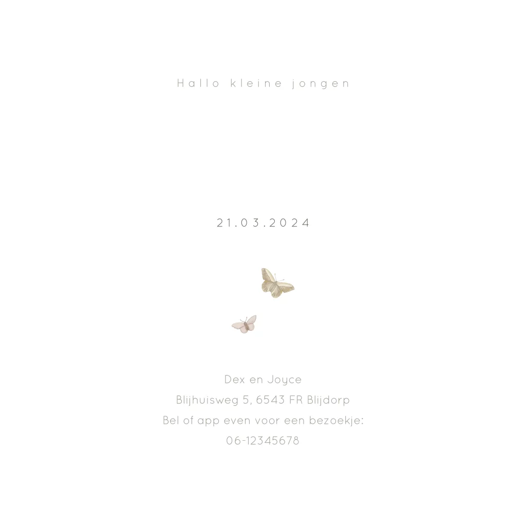 Dit geboortekaartje is een ontwerp van Jollein® uit de Dreamy Mouse collectie en is speciaal in samenwerking met Jollein® ontworpen. Alle designelementen staan daarom vast waardoor het ontwerp zelf niet aanpasbaar is. Je kunt de teksten uiteraard wel gemakkelijk aanpassen in de editor.