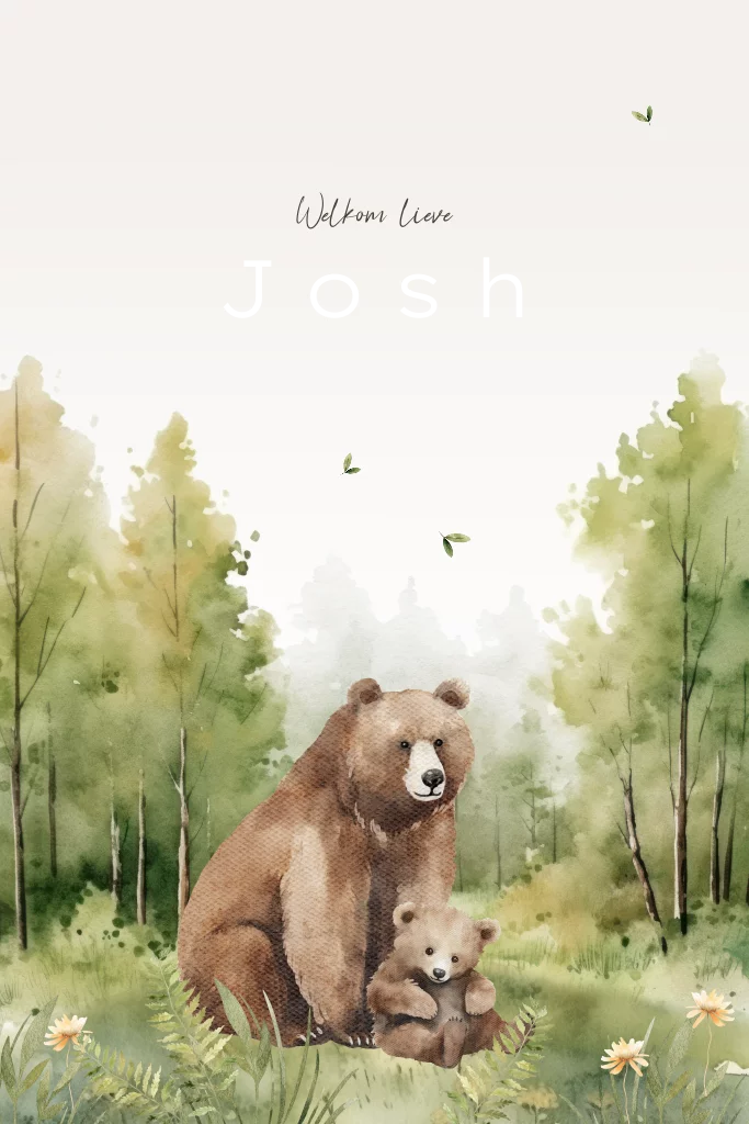 Dit prachtige geboortekaartje Josh heeft een unieke uitstraling en is perfect voor ouders die op zoek zijn naar een luxe en rijk geïllustreerd ontwerp met bosdieren. De getekende beren geven een lief en speels karakter aan het kaartje, terwijl de foliedruk zorgt voor een vleugje elegantie. Dit unisex kaartje is geschikt voor zowel jongens als meisjes. Het kaartje kan worden geleverd met een bijpassende witte envelop met een gouden inlay, wat zorgt voor een extra vleugje luxe. De combinatie van foliedruk, aquarel en illustratieve elementen maakt dit geboortekaartje uniek en onderscheidend. Kies voor dit geboortekaartje en laat een blijvende indruk achter bij familie en vrienden met de geboorte van jullie kindje.