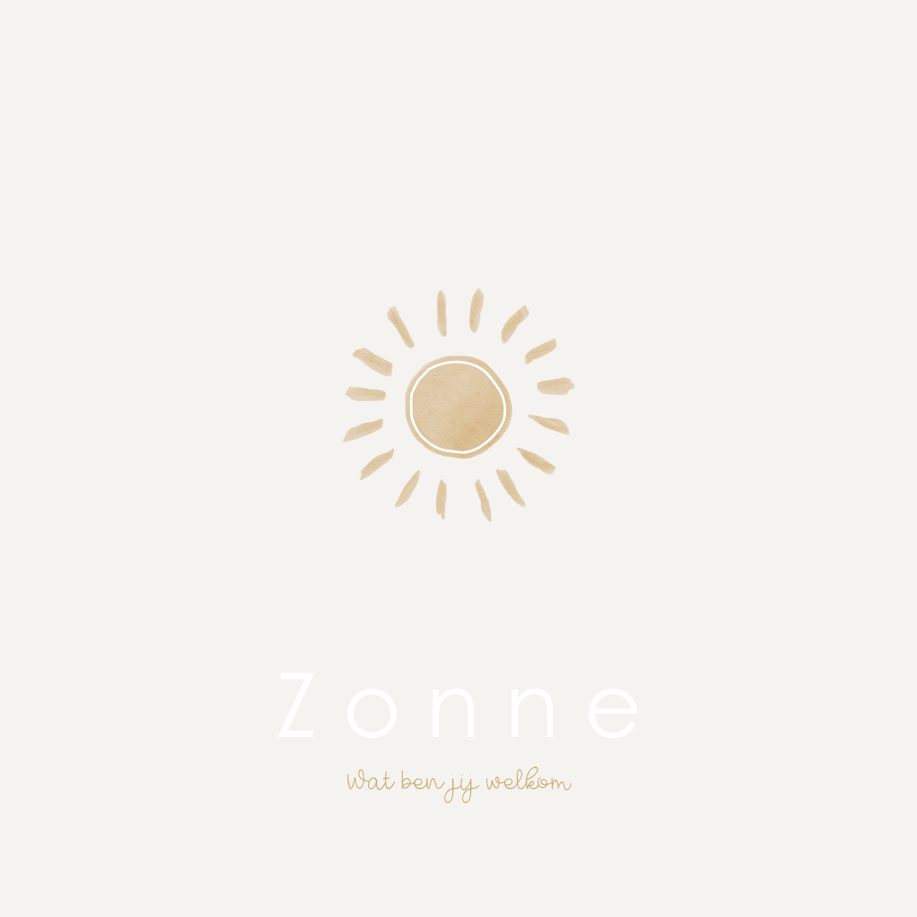 Prachtig genderneutraal geboortekaartje voor zowel een jongen als meisje. Dit babykaartje Zonne oogt rustig en eenvoudig met enkel een beige achtergrond en een zon, helemaal de trend van nu! De goudfolie geeft dit jongens en meisjeskaartje nog een extra luxe uitstraling. Liever roséfolie of koperfolie? Pas dit gemakkelijk aan in onze editor.
