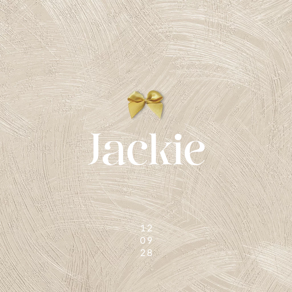 Genderneutraal geboortekaartje voor een jongen of meisje met een rustig stijlvol design. Dit babykaartje Jackie heeft een brons gouden achtergrond met verfvegen met structuur. De goudfolie en het echte strikje geven een luxe en stijlvolle uitstraling aan dit unisex geboortekaartje. Deze kaart kun je zelf bewerken in de editor, zo kun je de kleuren, lettertypes en teksten naar wens aanpassen.