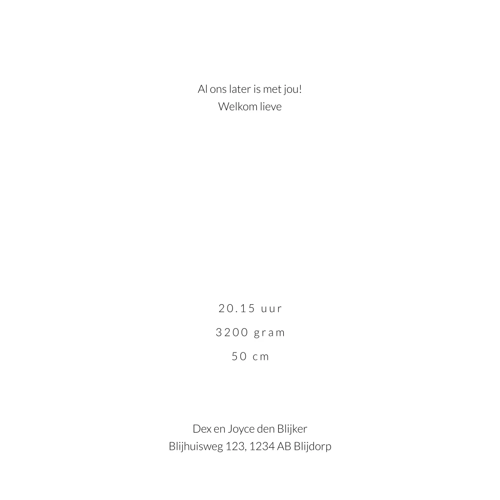 Stijlvol unisex geboortekaartje met foliedruk en echt strikje