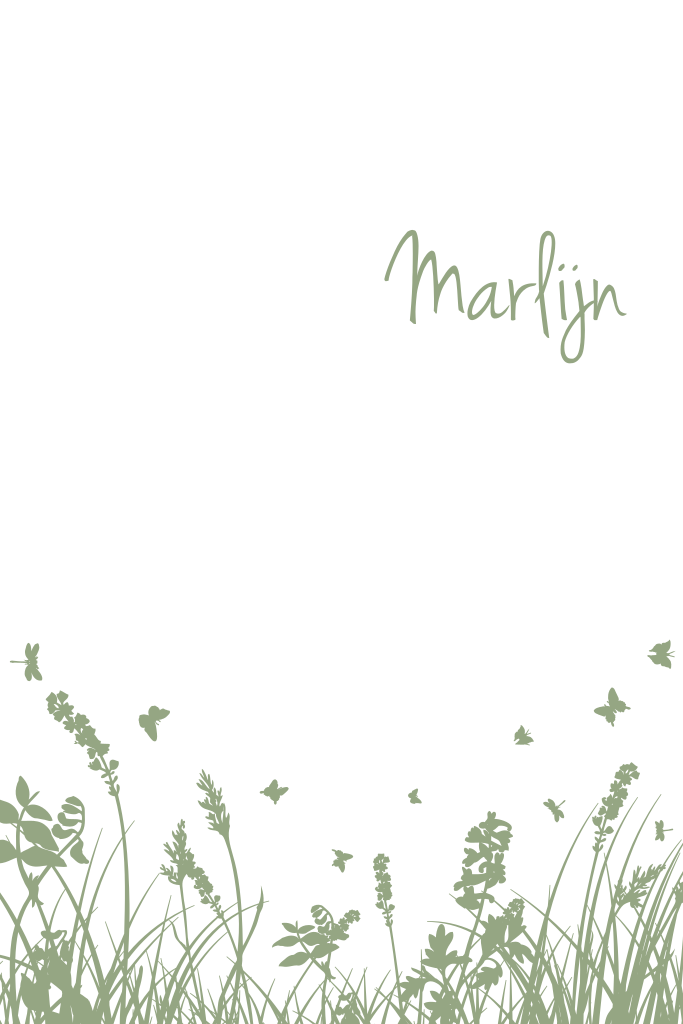 Silhouet geboortekaartje voor een dochter. Het meisje op de schommel en de hartjes op de voorzijde worden gedrukt in echt goudfolie. Dit geeft de kaart Marlijn een exclusieve uitstraling. Liever koperfolie, zilverfolie of roséfolie? Dit is gemakkelijk aan te passen in de editor.