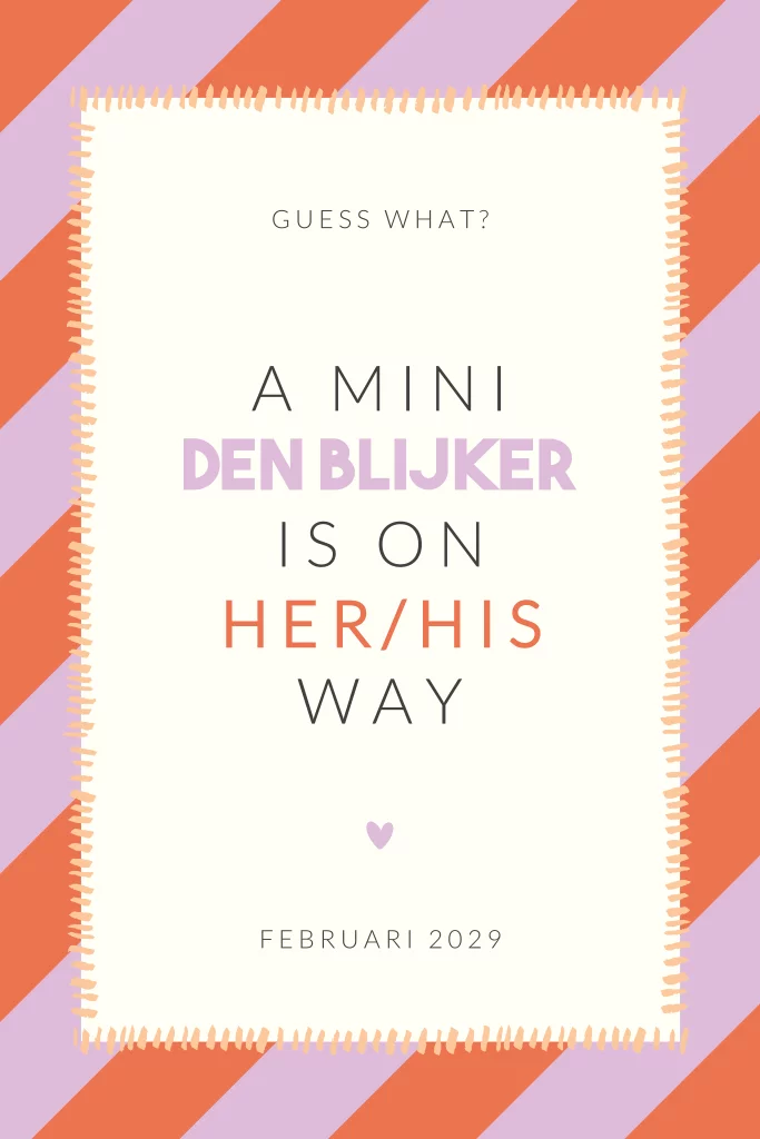 Is er een mini versie van jullie op komst? Wat een geweldig nieuws en natuurlijk wil je dat delen met je familie en vrienden. Stuur ze deze hippe en originele kaart om jullie zwangerschap aan te kondigen. Met een paar klikken pas je de achternaam en de uitgerekende datum aan. Voeg een persoonlijke tekst toe op de achterkant.