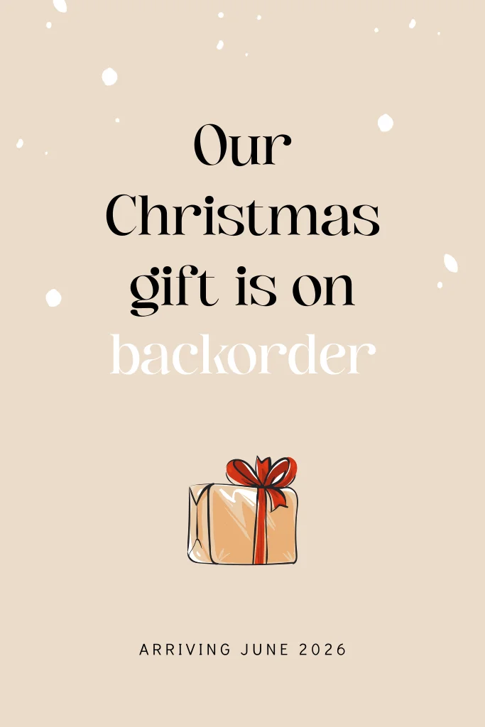 Zwangerschap aankondiging kerstkaart met sneeuw en cadeau