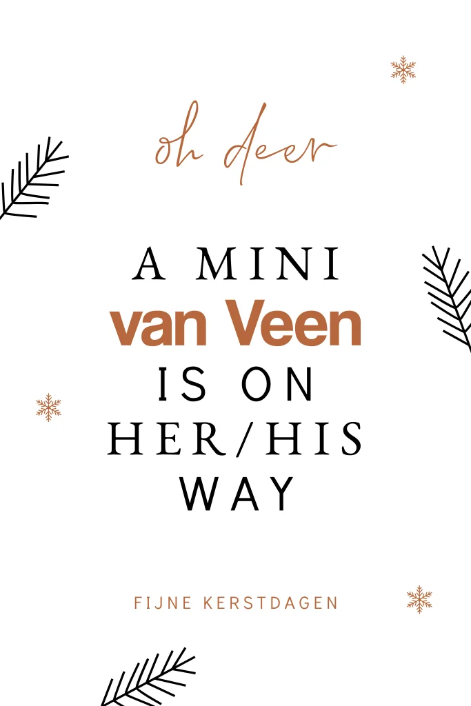 Oh deer! Is er een mini versie van jullie op komst? Wat een geweldig nieuws en natuurlijk wil je dat delen met je familie en vrienden. Hoe leuk is het om dat nieuws te versturen in combinatie met een kerstgroet?! Stuur ze deze hippe en originele kerstkaart om jullie zwangerschap aan te kondigen. Met een paar klikken pas je de achternaam en de uitgerekende datum aan. Voeg een persoonlijke tekst toe op de achterkant.