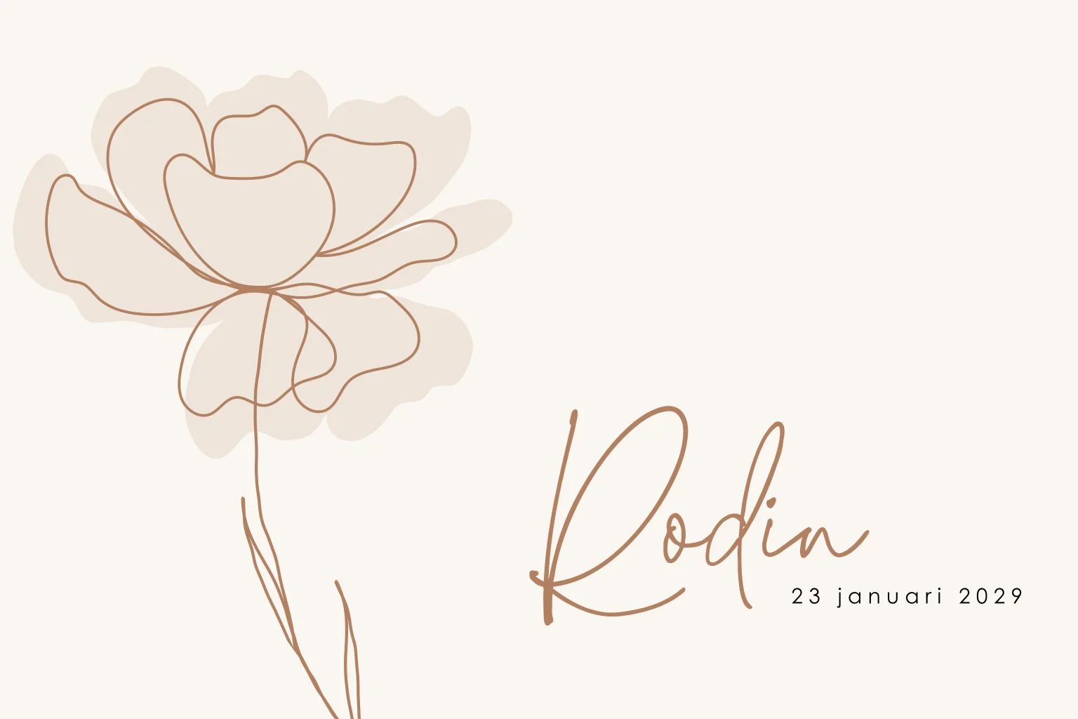 Wat is er mooier dan een geboortekaartje met een bloem? Deze unisex geboortekaart Rodin voor een jongen of meisje met een anjer is perfect voor een baby die in januari geboren wordt. De kaart is eenvoudig door de rustige lijntekening en neutrale kleuren. Liever een andere geboortebloem? Pas dit gemakkelijk aan in de editor.