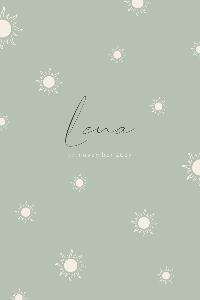 Dit gender neutrale geboortekaartje Lena is een ontwerp van Jollein® uit de Sun collectie en is speciaal in samenwerking met Jollein® ontworpen. Alle designelementen staan daarom vast waardoor het ontwerp zelf niet aanpasbaar is. Je kunt de teksten uiteraard wel gemakkelijk aanpassen in de editor. Hulp nodig? Laat het ons gerust weten!