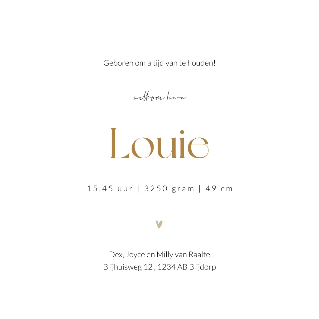 Pas dit geboortekaartje Louie eenvoudig aan in de editor.