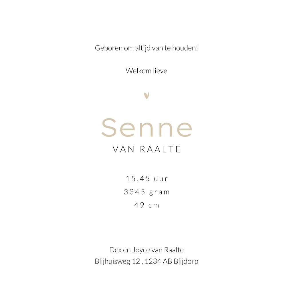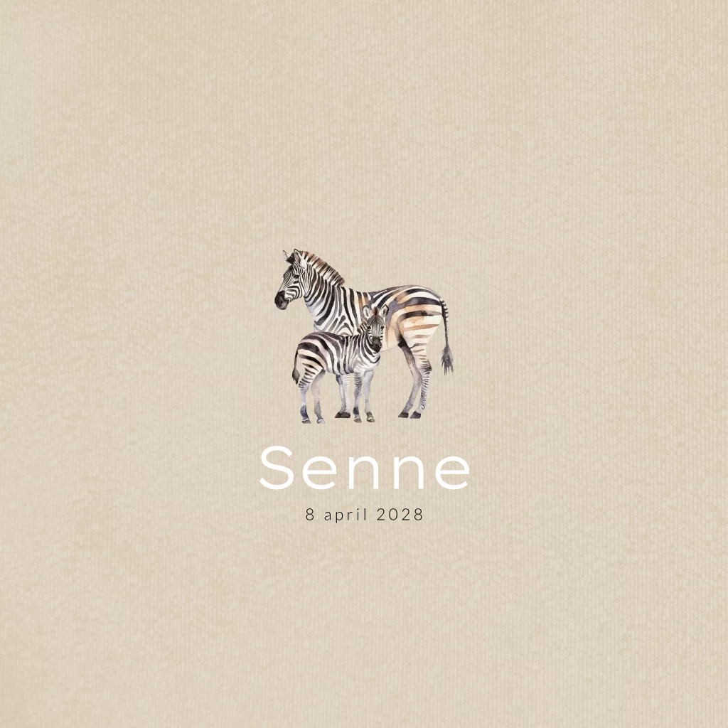 Illustratief unisex geboortekaartje voor een jongen of meisje. De zachte tinten van beige en bruin in combinatie met de dierenprint van de zebra geven een warme en natuurlijke uitstraling aan het kaartje. Dit geboortekaartje Senne is zeker ook geschikt voor een tweede kindje. Bestel vandaag nog en laat jullie familie en vrienden de geboorte van jullie kindje op een unieke en bijzondere manier weten.