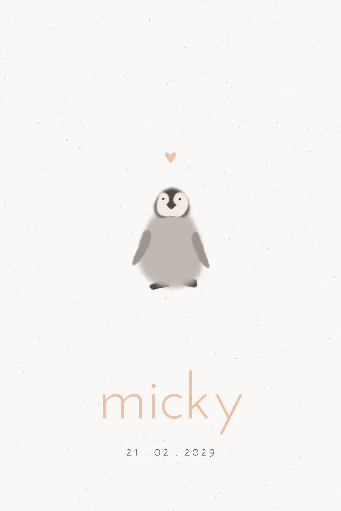 Basic geboortekaartje genderneutraal pinguïn