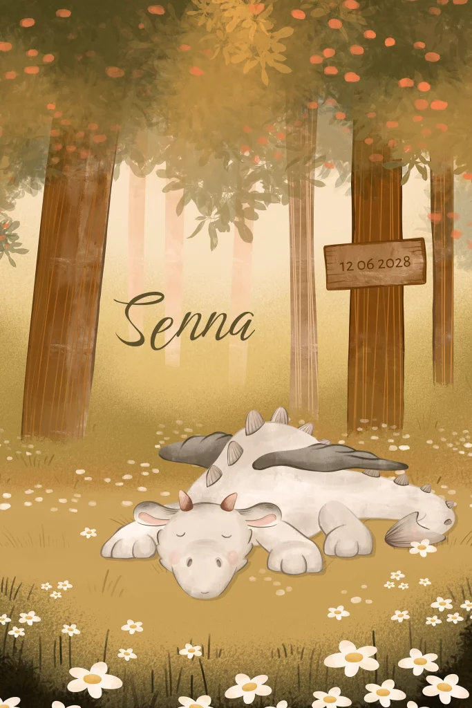 Dit geboortekaartje Senna is perfect voor zowel jongens als meisjes. Op dit unisex geboortekaartje ze je een schattig draakje in het bos slapen tussen de madeliefjes. Het geboortekaartje heeft een dromerige, sprookjesachtige sfeer. Pas dit kaartje met ronde hoeken naar eigen wens aan in de online editor en deel de vreugde van de komst van jullie zoon of dochter. Maak het kaartje helemaal af met de bijpassende sluitzegel.