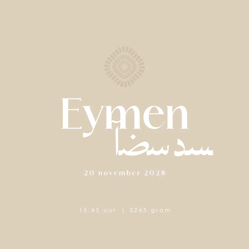 De mogelijkheid om dit Arabische geboortekaartje aan te passen in de online editor zorgt ervoor dat het kaartje helemaal naar wens kan worden gemaakt. Kortom, de perfecte keuze voor ouders die op zoek zijn naar een uniek, elegant en betekenisvol geboortekaartje voor hun kindje.