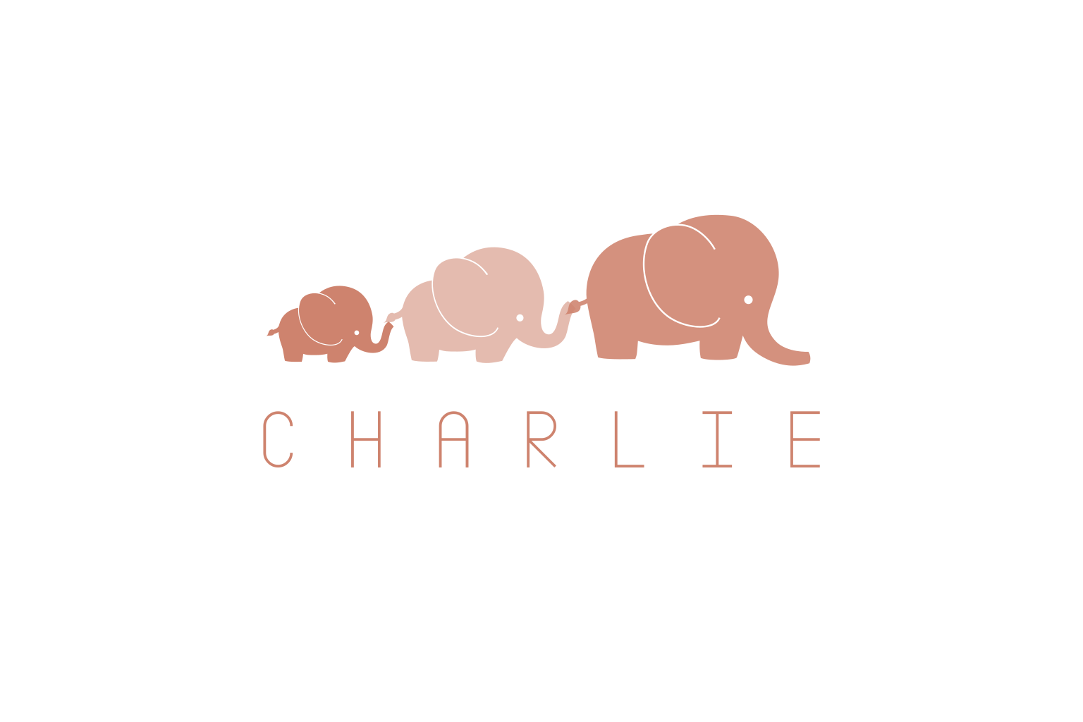 Basic en klassiek geboortekaartje met drie olifantjes achter elkaar. De drie olifantjes zijn een verwijzing naar de ouders en de baby. Aan de achterkant staat ook een olifantje.