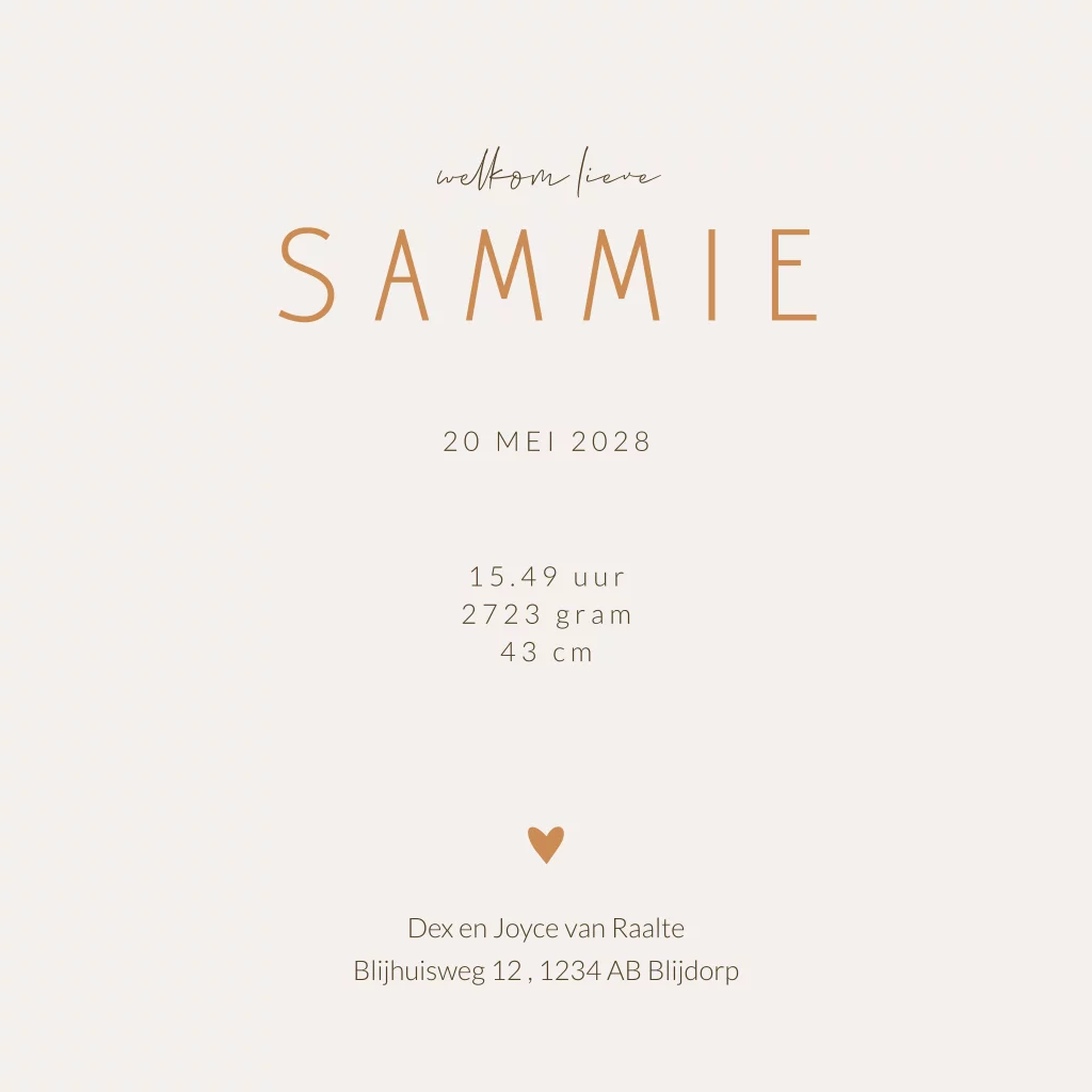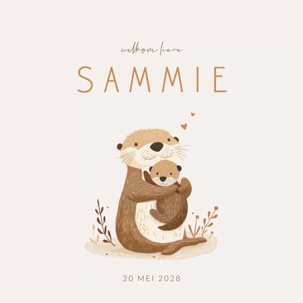 Dit prachtige unisex geboortekaartje Sammie met een liefdevol ontwerp van een otter mama en haar baby is perfect voor zowel jongens als meisjes. Het kaartje heeft zachte kleuren wat een natuurlijke en warme uitstraling geeft aan het geheel. Bestel vandaag nog en maak de geboorte van jullie kindje onvergetelijk met dit schattige illustratieve otter geboortekaartje.