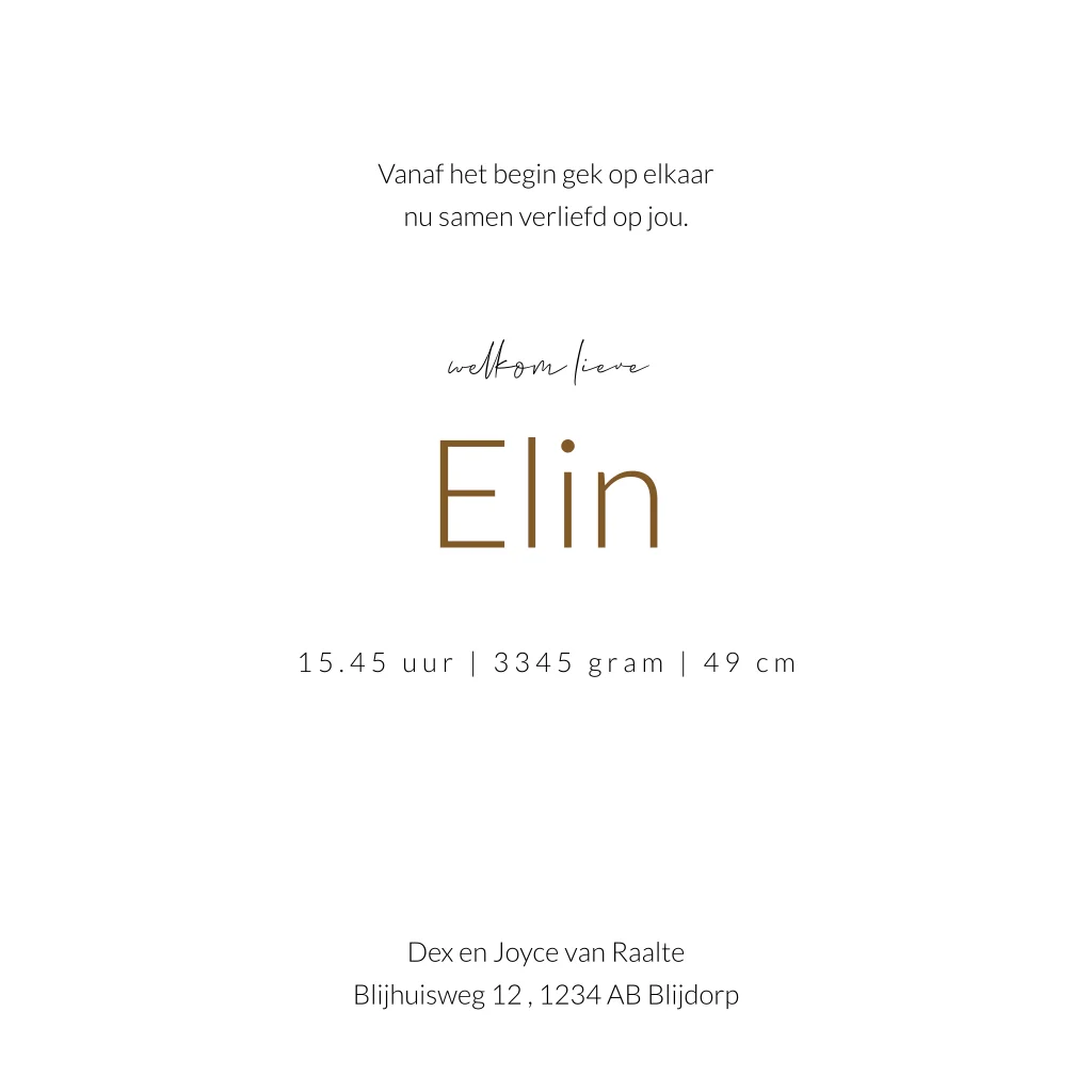 Winters geboortekaartje voor een jongen of meisje. Dit unisex geboortekaartje Elin heeft een winters ontwerp met sneeuw, besneeuwde bomen en hertjes. Perfect voor een winter baby! Je kunt dit geboortekaartje zelf gemakkelijk bewerken, opslaan en bestellen. Vragen of wensen? Laat het gerust weten, wij helpen je graag.
