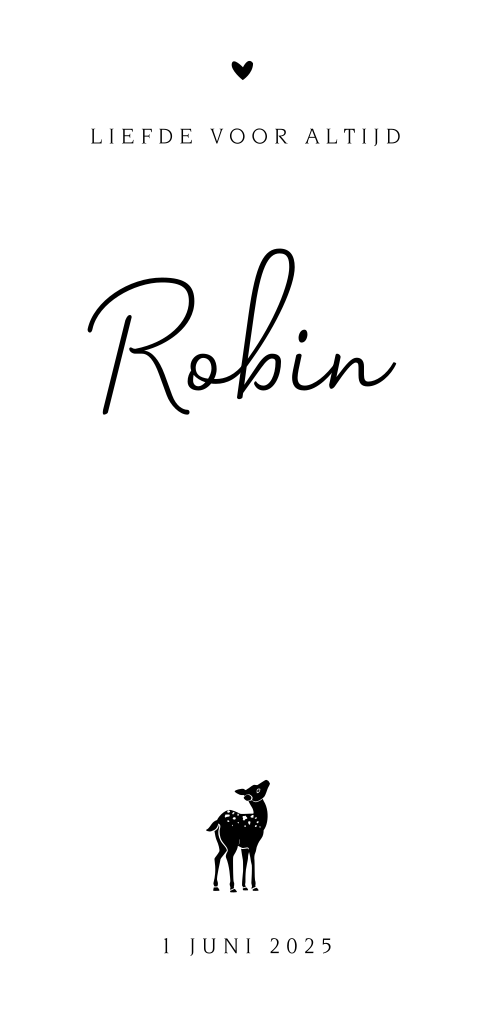 Dit geboortekaartje kan gebruikt worden voor een meisje en voor een jongen. De zwart-wit kleuren zijn super geschikt als unisex kaartje. Dus wil je een baby kaartje dat zowel voor een jongen als meisje geschikt is, dan is deze kaart een mooie basis. Het hertje op de voor en achterkant maken het een lief kaartje.