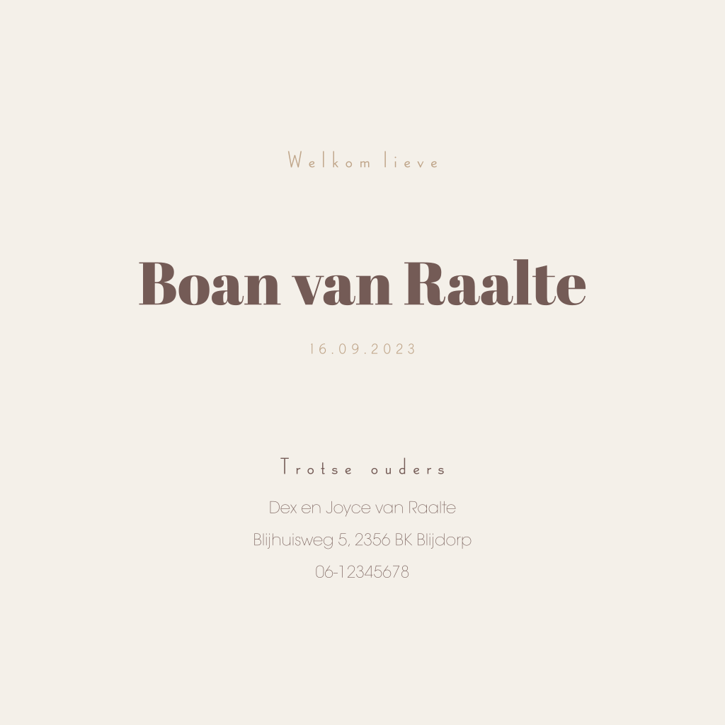 Dit geboortekaartje is een ontwerp van Jollein® uit de Teddy Bear collectie en is speciaal in samenwerking met Jollein® ontworpen. Alle designelementen staan daarom vast waardoor het ontwerp zelf niet aanpasbaar is. Je kunt de teksten uiteraard wel gemakkelijk aanpassen in de editor.