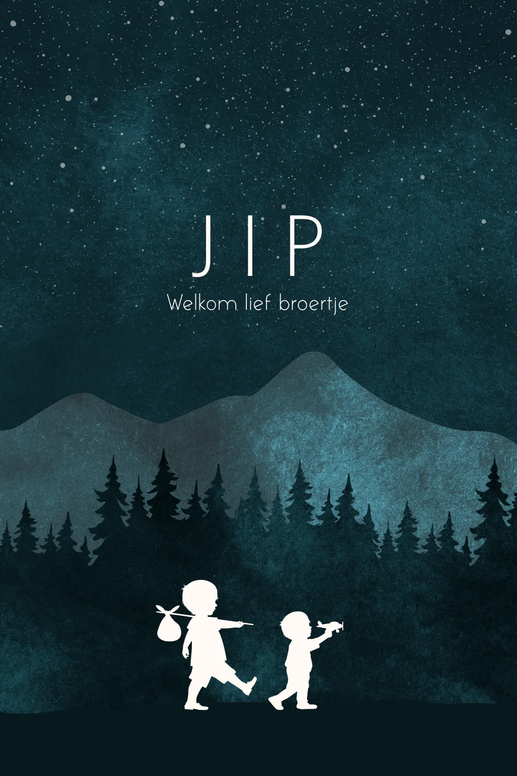 Geboorte insteekkaart silhouet broertjes in de nacht op avontuur