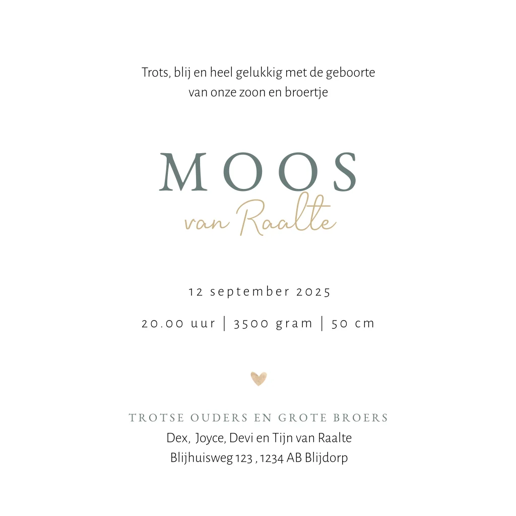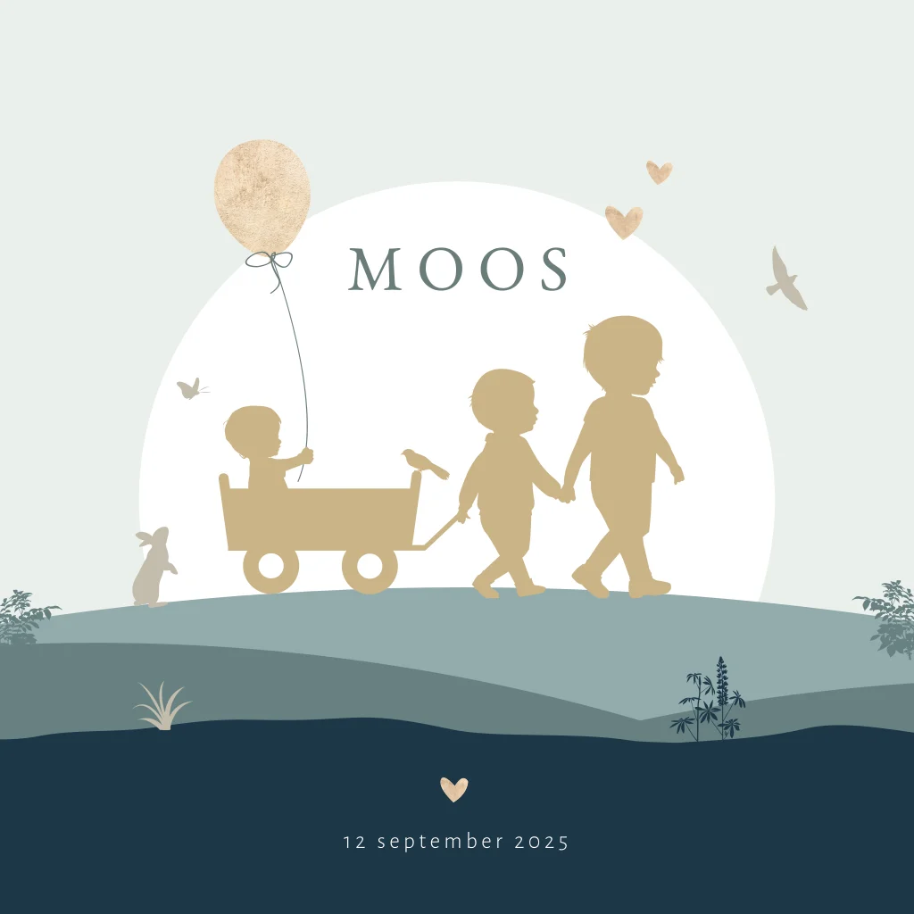 Silhouet geboortekaartje in trendy kleuren voor een derde zoon!