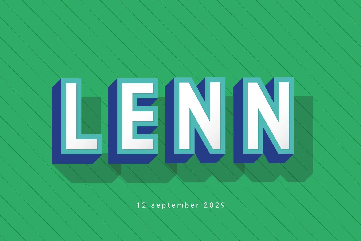 Een stoer geboortekaartje voor een jongen! Dit geboortekaartje Lenn bevat 3D letters met een gestreepte groene achtergrond. De spetterende kleuren zorgen ervoor dat dit geboortekaartje voor jullie zoon opvalt.
