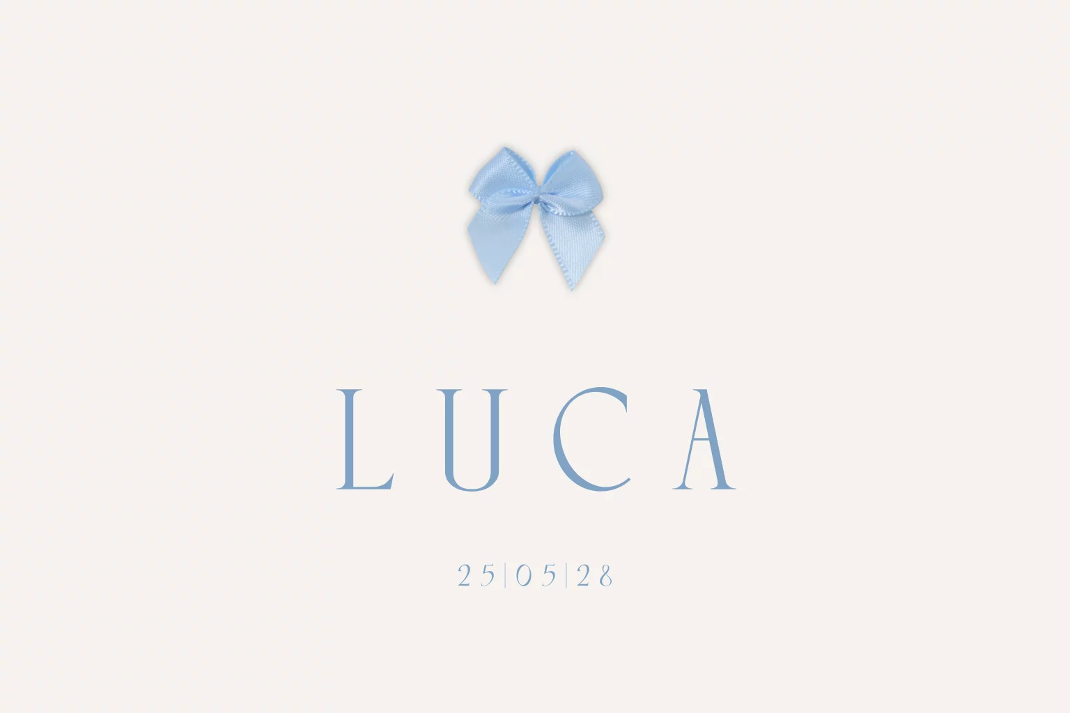 Dit geboortekaartje is voorzien van een écht strikje. De strikjes worden niet standaard meegeleverd, maar zijn bij te bestellen. Het strikje op dit kaartje dient als voorbeeld en wordt niet gedrukt! Op die plek kun je straks zelf het échte strikje plakken. Dit geboortekaartje is geïnspireerd op het kaartje van Roos van der Aa.