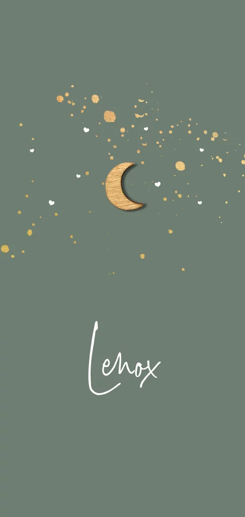 Dit kaartje is voorzien van een écht houten maantje. Houten vormpjes worden niet standaard meegeleverd, maar zijn bij te bestellen. Het houten vormpje op dit kaartje dient als voorbeeld en wordt niet gedrukt! Op die plek kun je straks zelf het échte houten vormpje plakken.