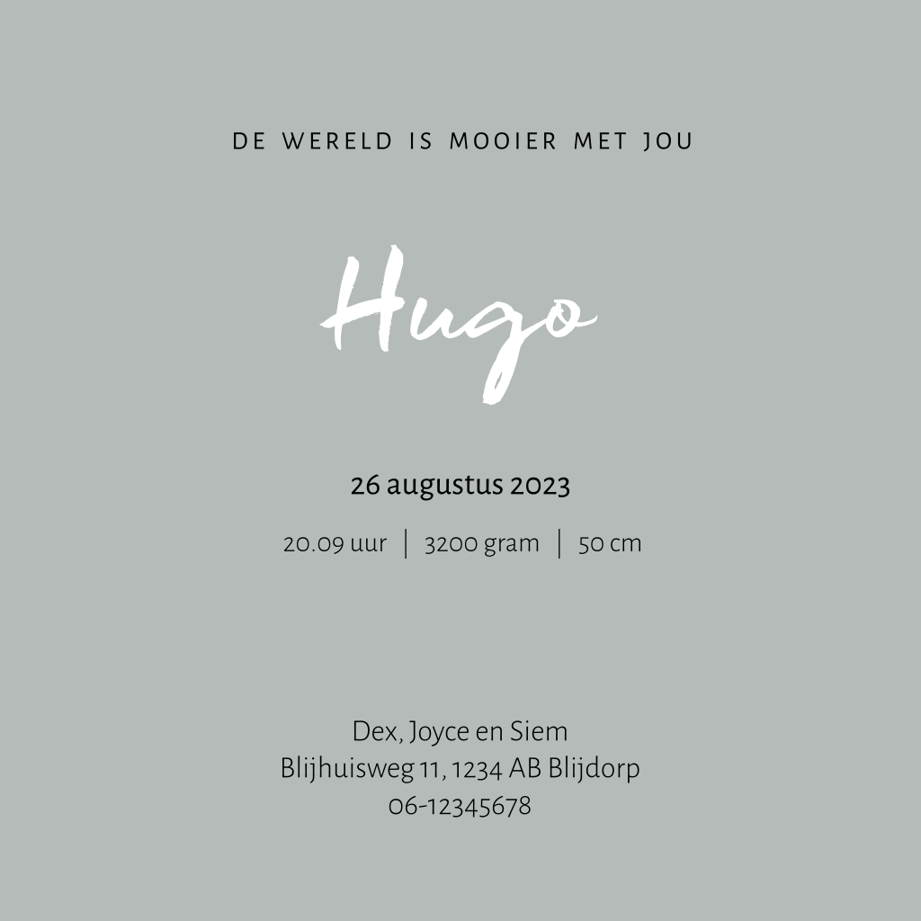 Een leuk boerderij geboortekaartje voor een jongen. Op dit boerderij kaartje Hugo staat een jongen op zijn tractor temidden van een aantal boerderijdieren zoals een haan, lammetje, konijn en zwaluwen. Dit silhouet kaartje is gemakkelijk aan te passen.