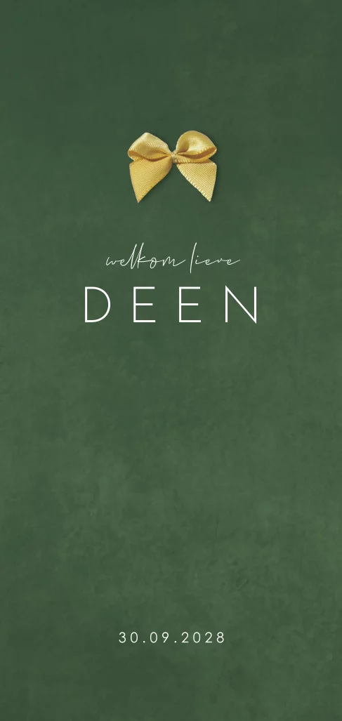 Luxe geboortekaartje voor een jongen met afgeronde hoeken en echt strikje. Dit geboortekaartje Deen is daarnaast zowel stoer als stijlvol. Pas dit babykaartje met afgeronde hoeken, naar je eigen smaak aan in de editor.