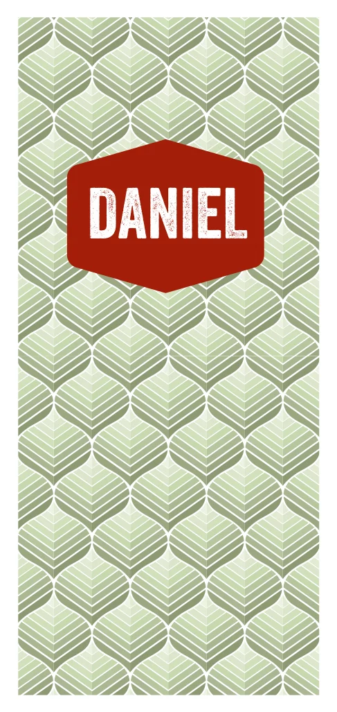 Hip geboortekaartje voor een jongen. De kleuren en het patroon aan de voorkant maken het het kaartje helemaal retro. De naam staat vermeld in een rood vlak, dit is tevens de kleur van de achterkant van de kaart.