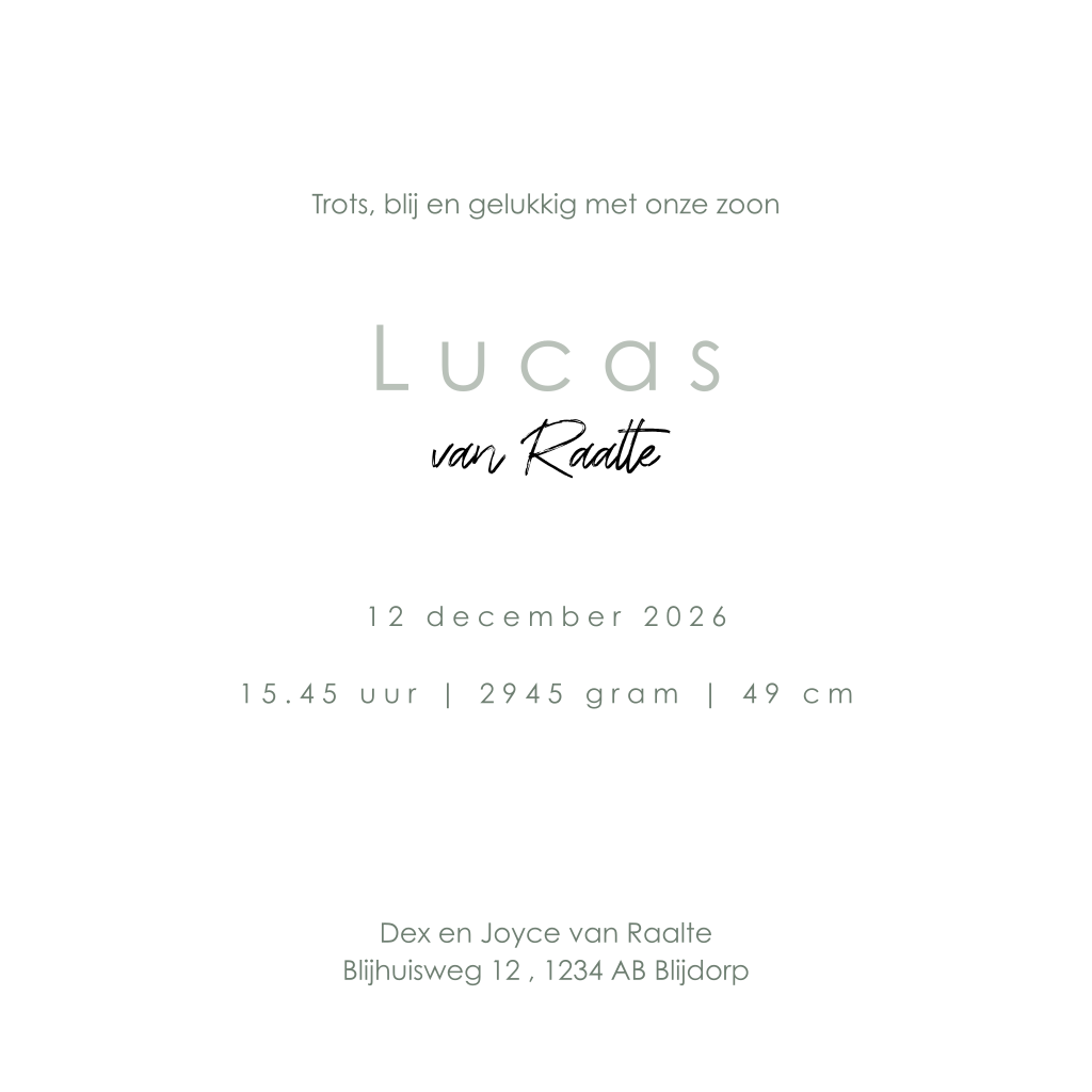 Je kunt dit geboortekaartje zelf gemakkelijk bewerken, opslaan en bestellen.