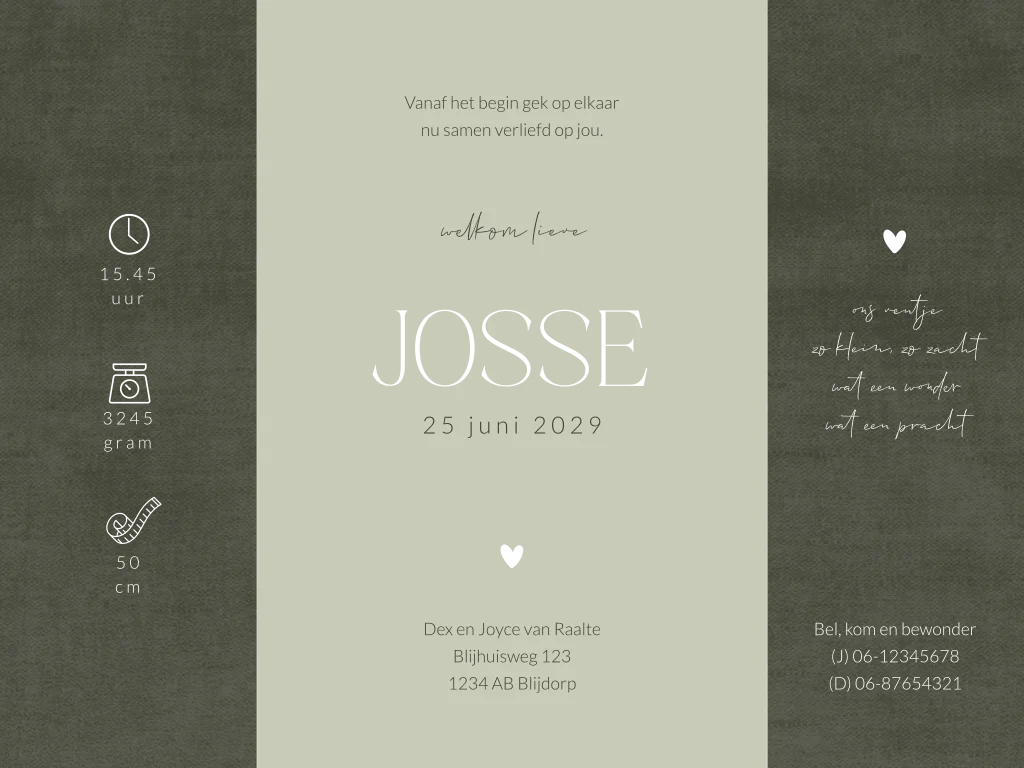 - Formaat geboortekaartje: 10 x 15 cm of 11,1 x 17,4 cm (Dit kies je voordat je deze kaart gaat bewerken)