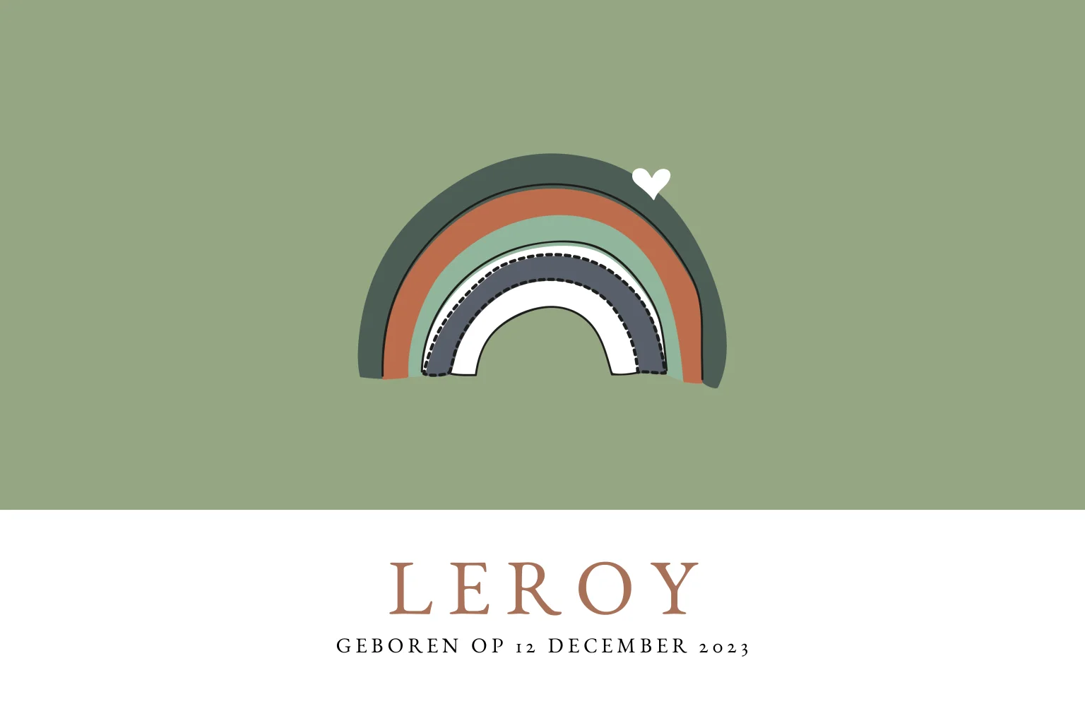 Geboortekaartje voor een jongen met een regenboog. De kleuren op het babykaartje Leroy zijn trendy en stoer.