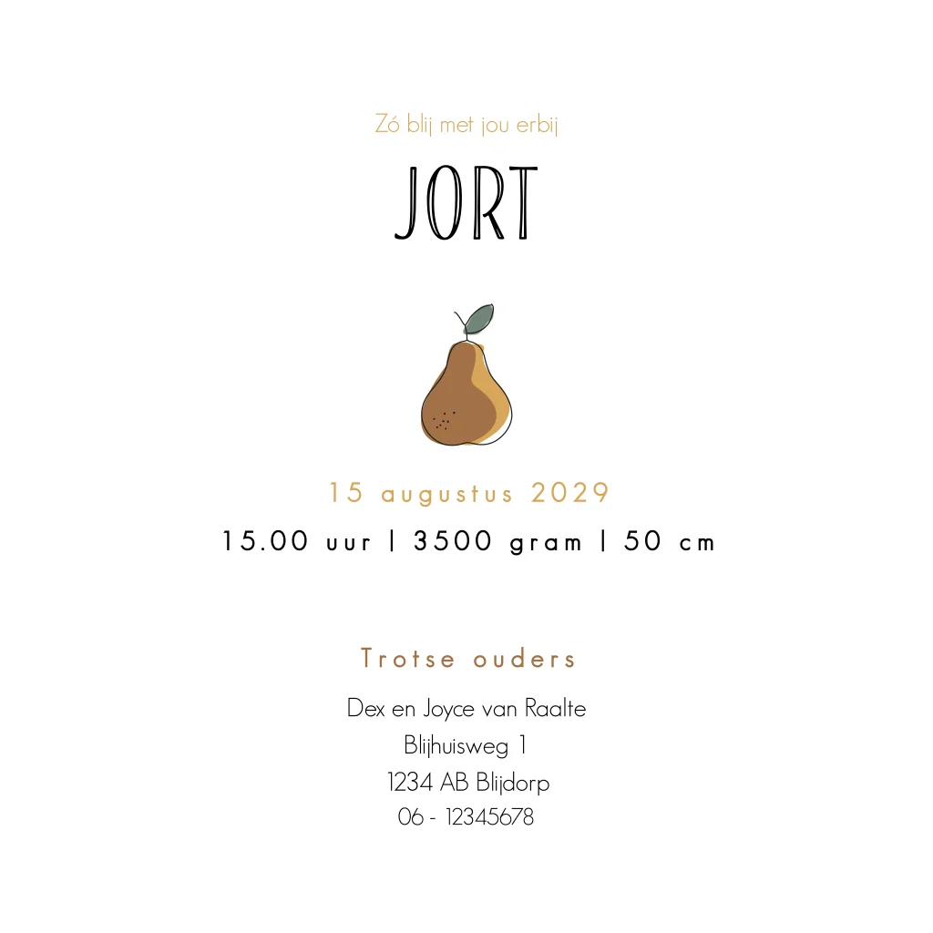 Geboortekaartje met peer uit Jollein collectie Peach & Pear