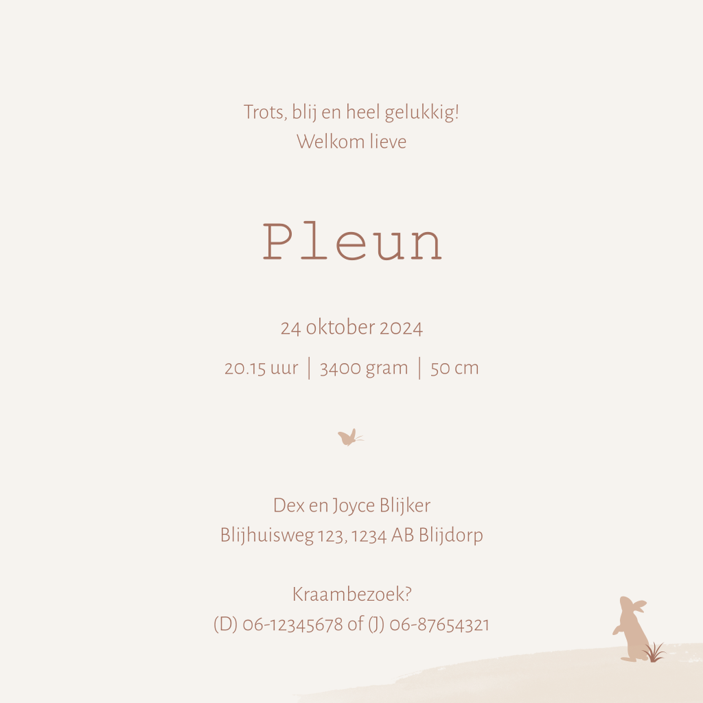 Je kunt dit geboortekaartje zelf gemakkelijk bewerken, opslaan en bestellen.