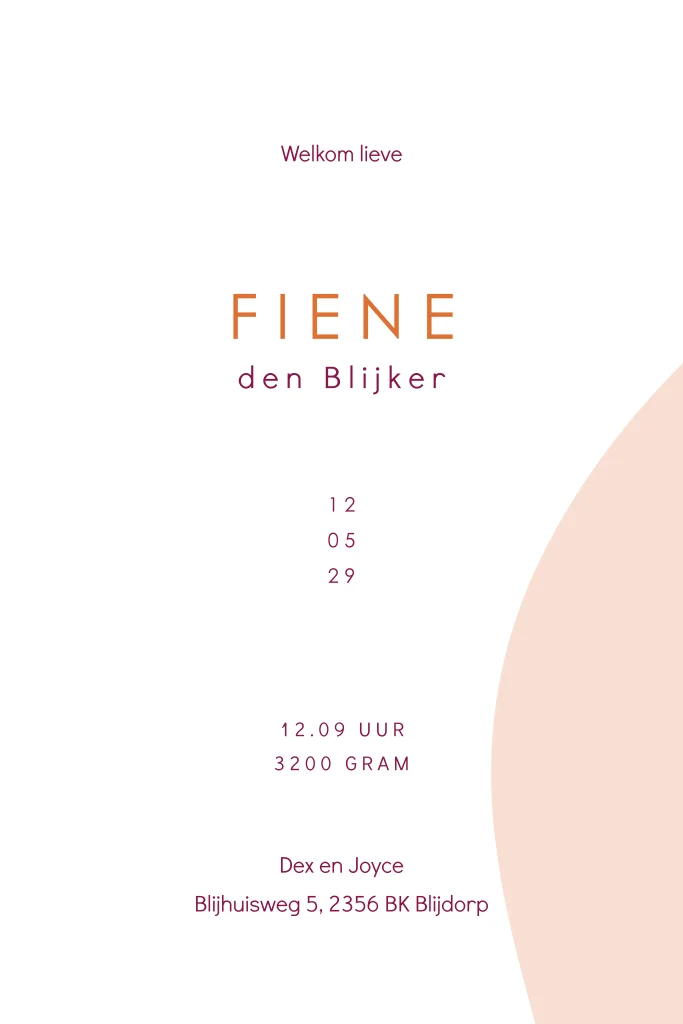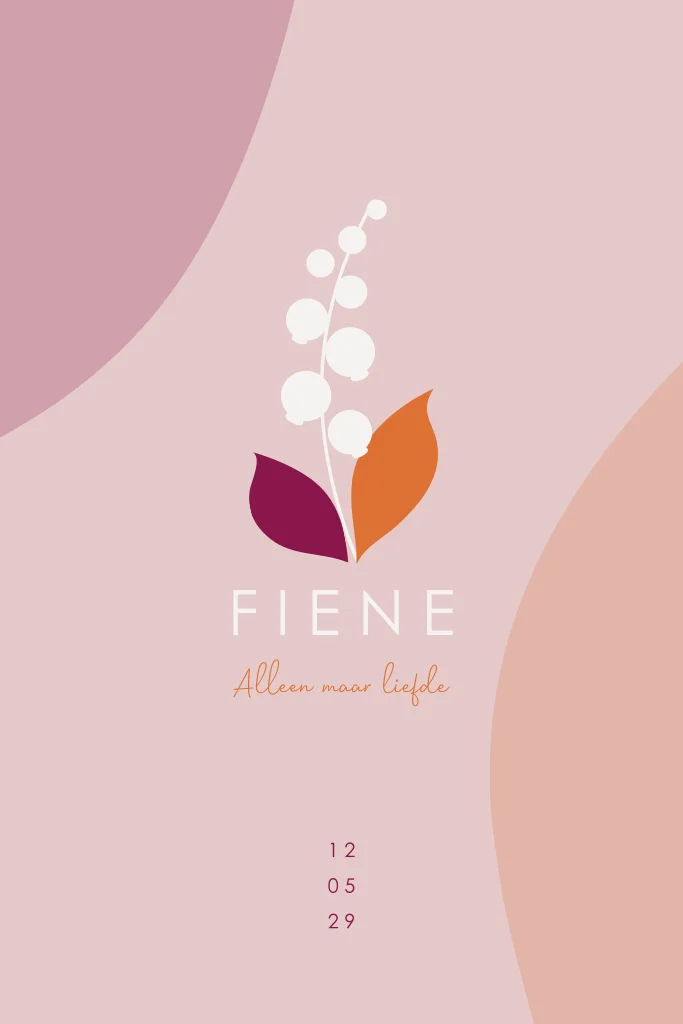 Jullie dochter is geboren in de maand mei en jullie willen het iedereen laten weten! Dit geboortekaartje Fiene met de geboortebloem van mei is perfect om te laten zien hoe gelukkig jullie zijn. De afgeronde hoeken maken het kaartje extra bijzonder. De tekst en kleuren kunnen eenvoudig aangepast worden in de editor.