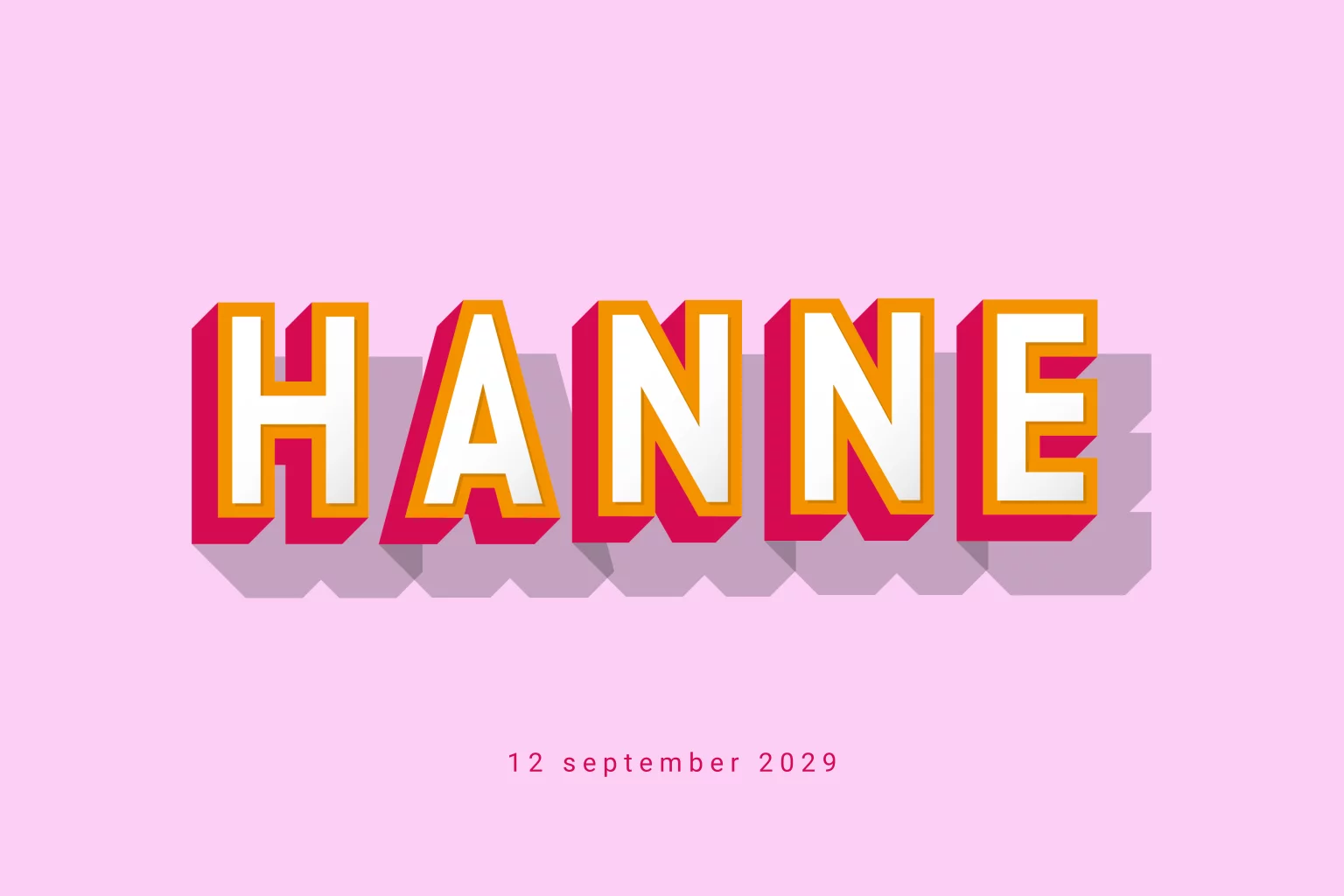 Een uniek geboortekaartje met opvallende kleuren! Op dit kaartje Hanne zie je de naam in 3D letters vormgegeven. Een basic kleurrijk kaartje met een originele uitstraling. De ronde hoeken geven een speels effect aan het kaartje.
