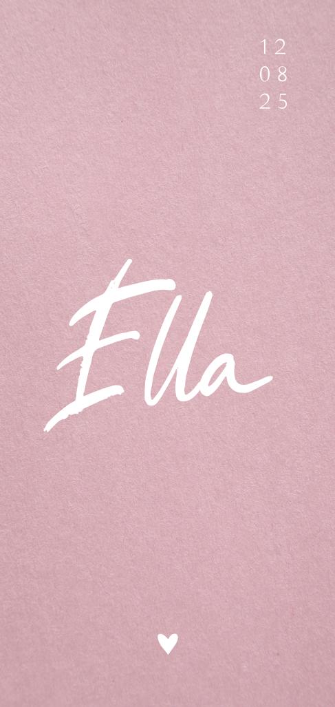 Basic geboortekaartje voor een meisje met een rustig en basic design. Op dit babykaartje staat de naam Ella in een sierlijk lettertype. Deze kaart kun je zelf bewerken in de editor, zo kun je de kleuren, lettertypes en teksten naar wens aanpassen.