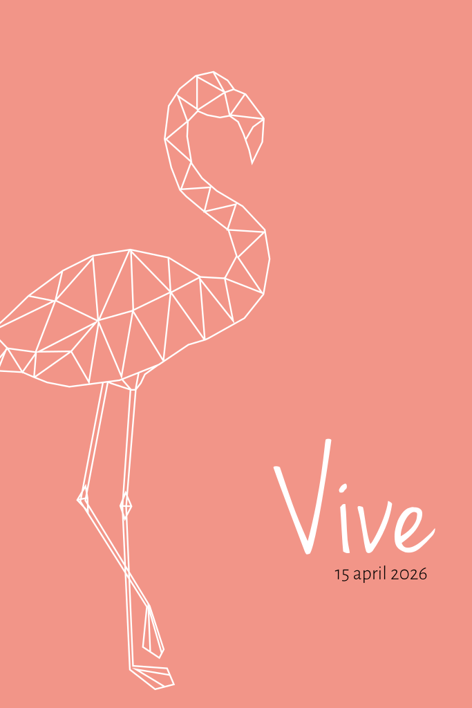 Dit geboortekaartje is speciaal voor een meisje. De geometrische flamingo maakt de kaart speels. De kleur koraal roze maakt het echt meisjes achtig