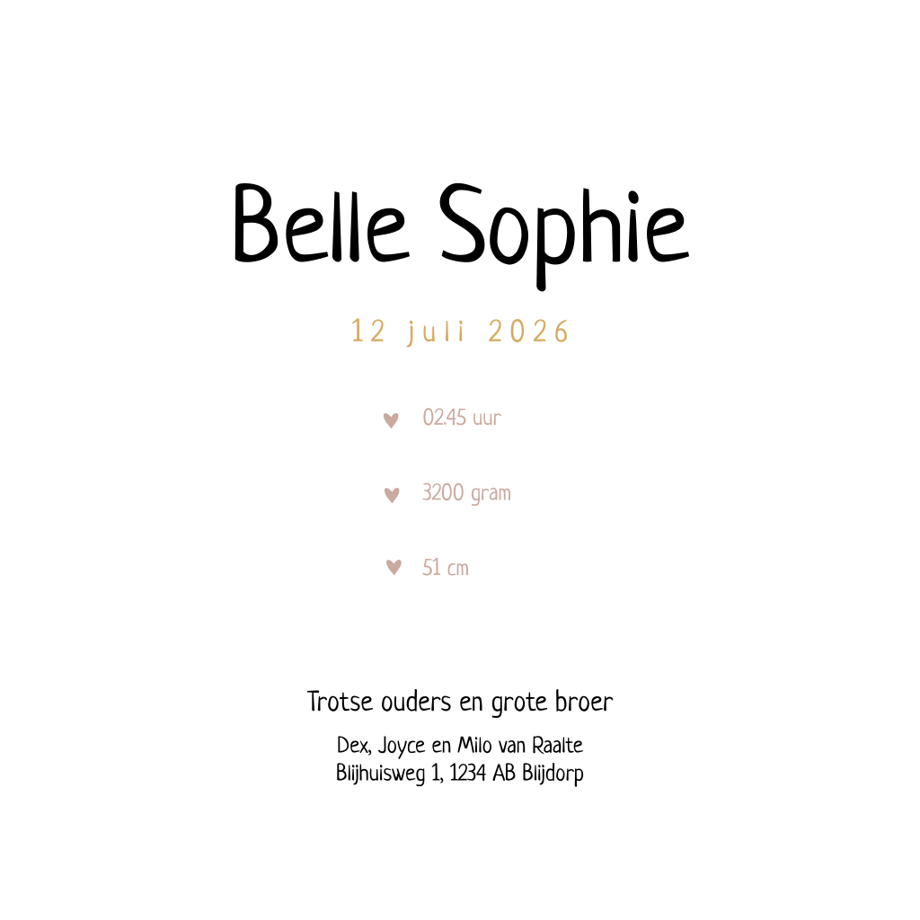 Hip silhouet geboortekaartje voor een eerste kindje, een dochter. Op dit meisjeskaartje Belle zie je een meisje op een voertuig, een jeep, tussen een ton sur ton landschap in bruine en roze kleuren. Verder op dit babykaartje een grote giraffe en palmbomen. Teksten, kleuren en de silhouetten kun je aanpassen in de editor. Dit silhouet geboortekaartje is ook mogelijk voor een andere gezinssamenstelling.