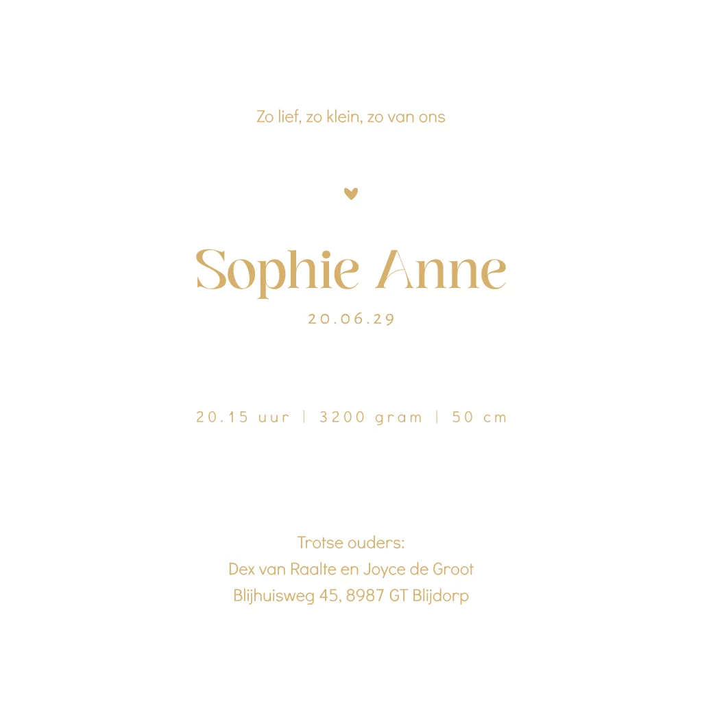 Een schattig geboortekaartje voor een meisje! Dit kaartje Sophie heeft een rustige en lieve uitstraling. Op dit kaartje zie je een klein meisje tegenover een kat staan. Pas dit kaartje naar eigen wens aan in onze online editor en maak het kaartje voor jullie dochter compleet met de oudroze envelopkleur.