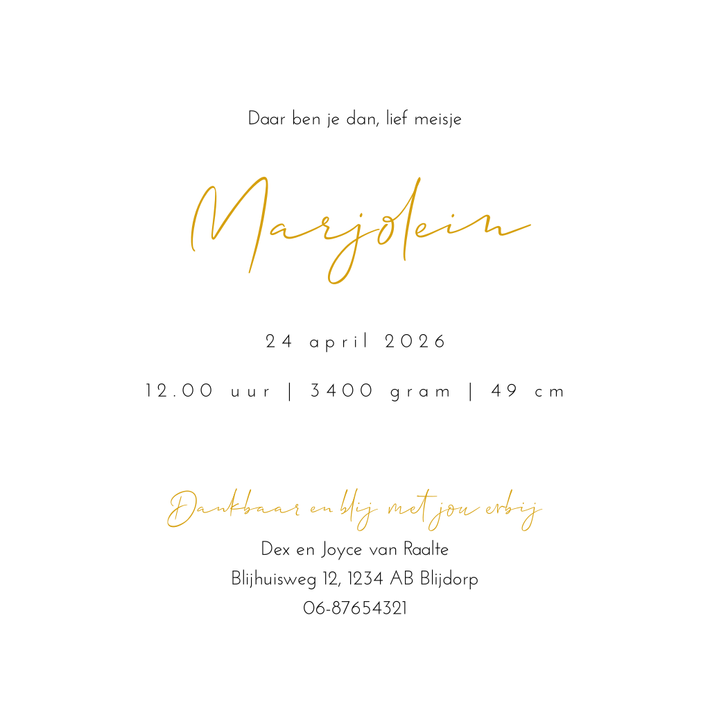 Je kunt dit geboortekaartje zelf gemakkelijk bewerken, opslaan en bestellen.