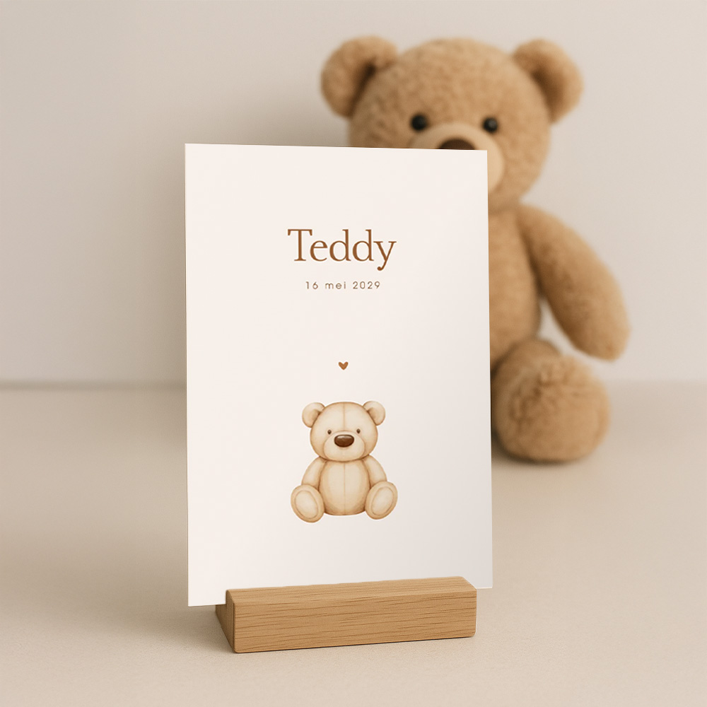 Geboortekaartje Teddy met schattig teddybeertje. De achtergrond is beige waardoor dit kaartje geschikt is voor zowel een jongen als een meisje. Je kunt dit geboortekaartje zelf gemakkelijk bewerken, opslaan en bestellen. Vragen of wensen? Laat het gerust weten, wij helpen je graag.