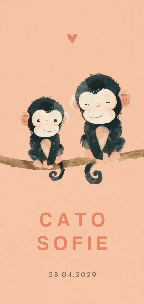 Zusje geboortekaartje met aapjes op tak