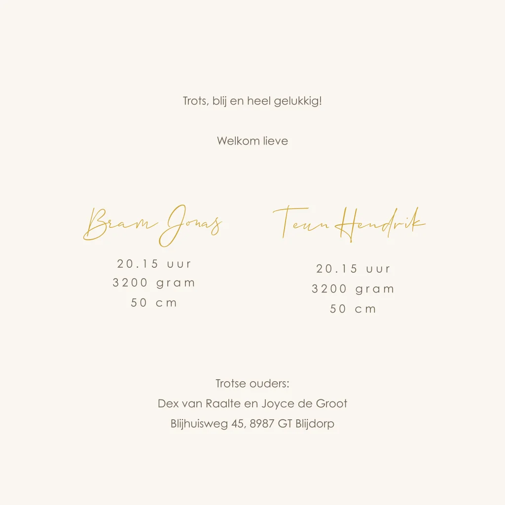 Geboortekaartjes tweeling