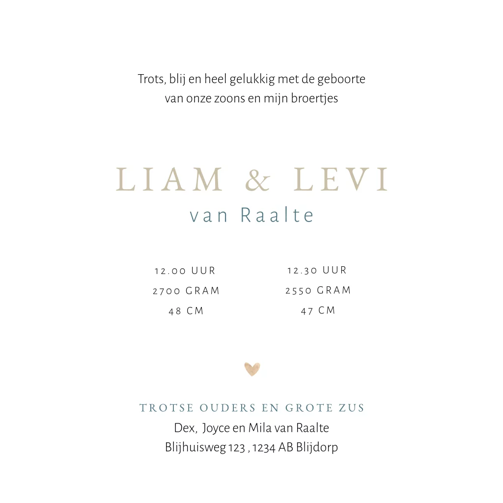 Geboortekaartjes tweeling