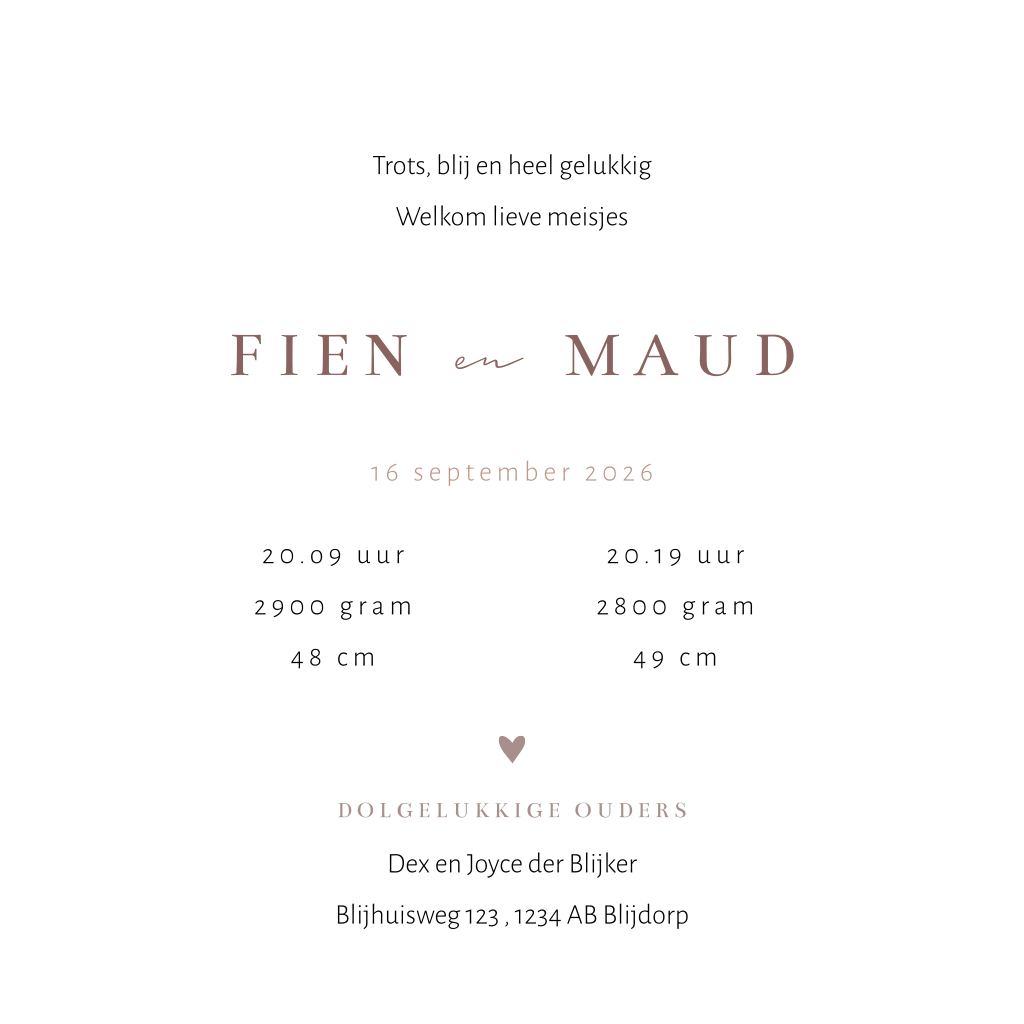 Geboortekaartjes tweeling