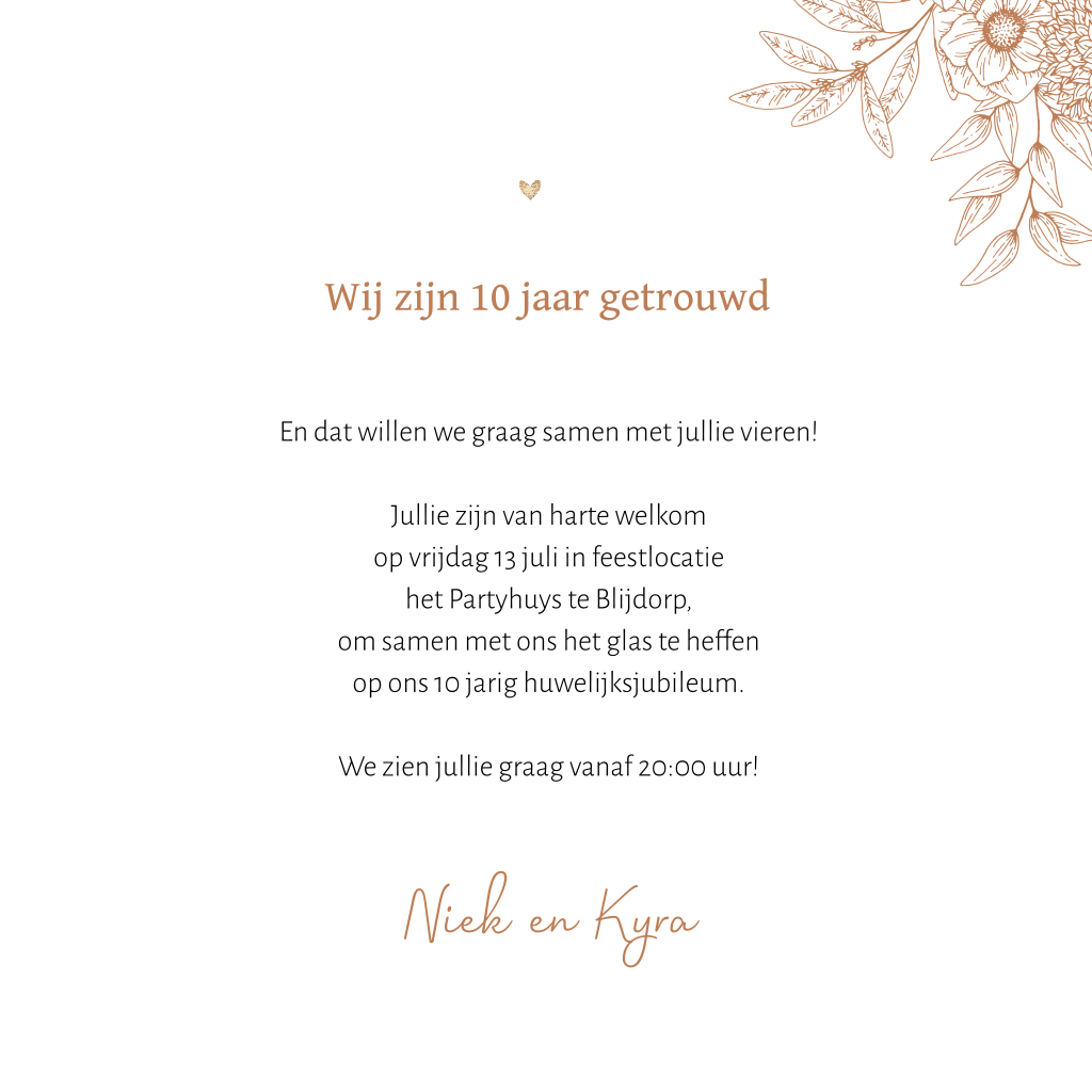 Uitnodiging 10 jaar getrouwd met foto en bloemen