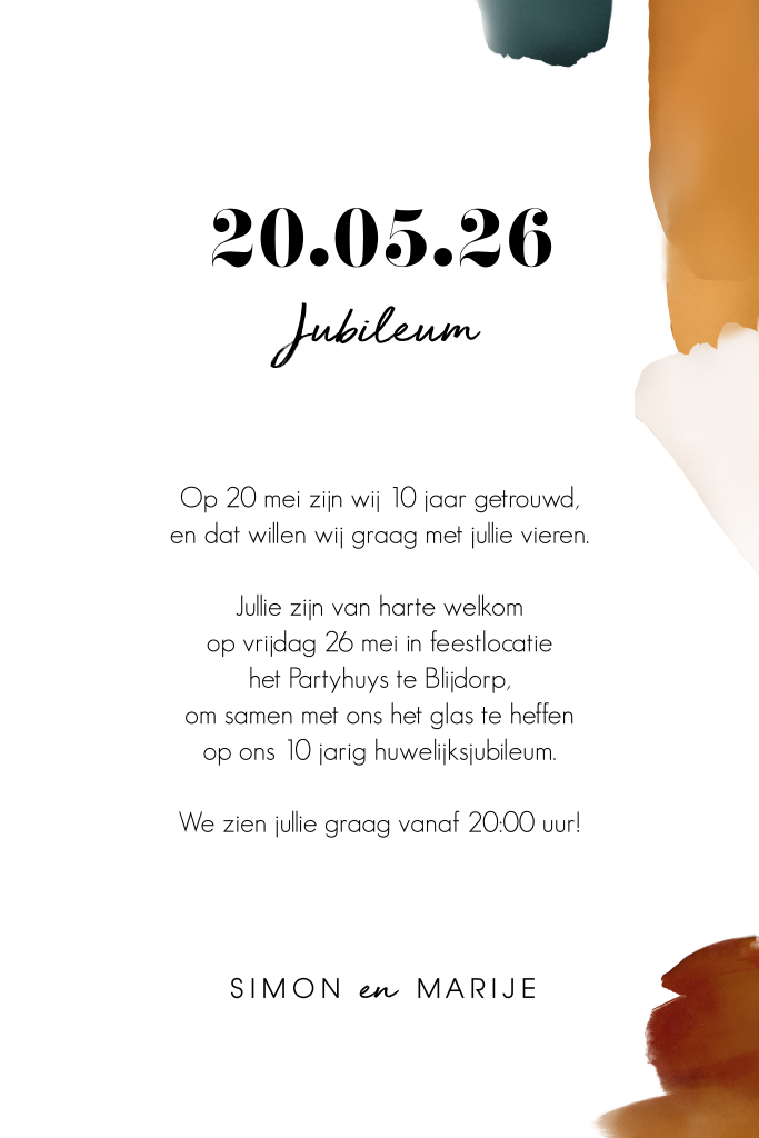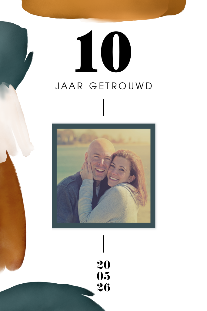 Moderne uitnodiging 10 jaar getrouwd met foto en abstracte vlekken